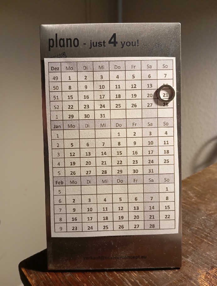 Ich finde den kleinen, stehenden Tischkalender mit Drei-Monats-Ansicht echt praktisch.