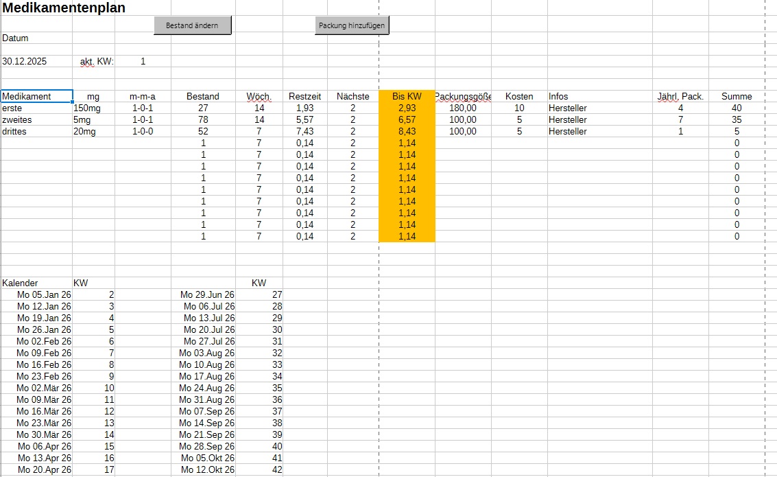 LibreOffice-Version: Medikamentenplan LibreOffice