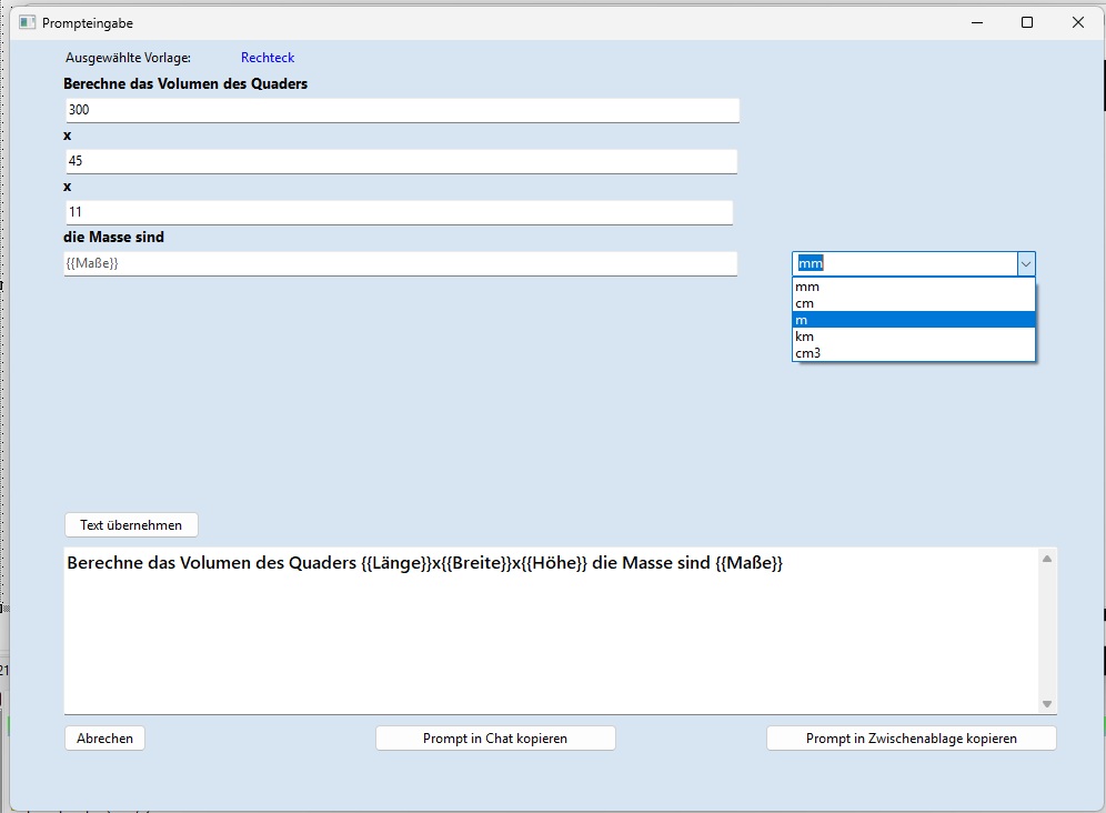 Schluss mit Copy-Paste-Chaos! Mit dem MDPromptTool erstellst und verwaltest du ganz einfach deine eigenen Promptvorlagen für jeden KI-Bot – inklusive cleverer Platzhalter, die du im Handumdrehen ausfüllst. Egal ob für kreative Texte, schnelle Analysen oder wiederkehrende Aufgaben: Ein Klick, Vorlage auswählen,